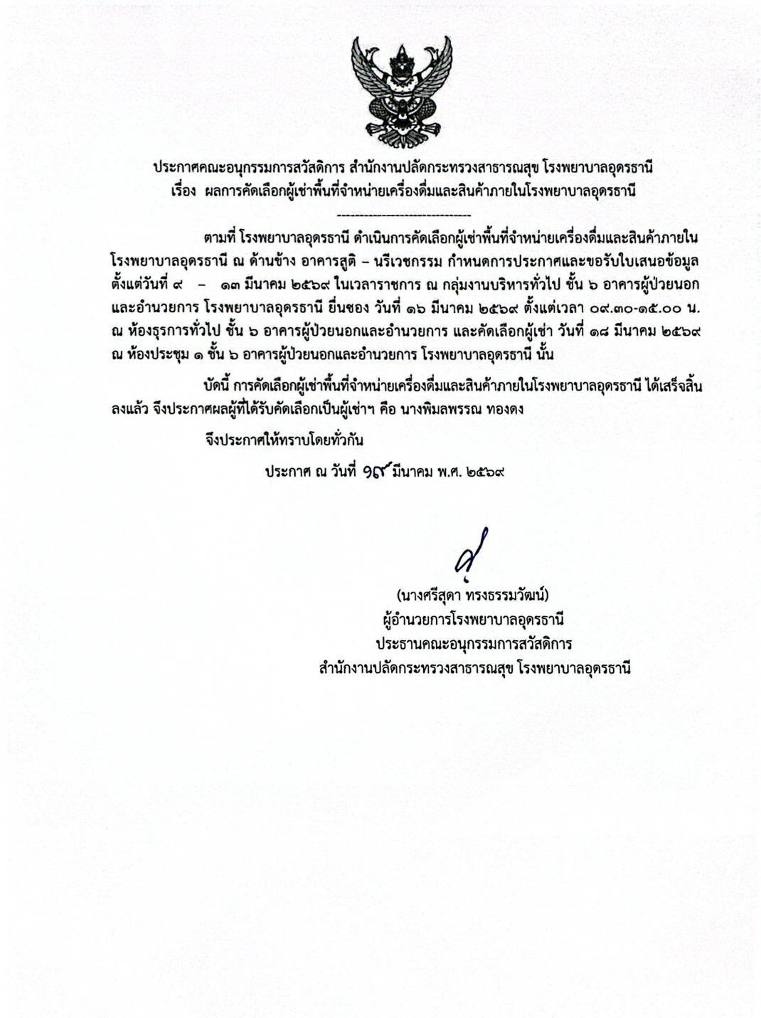 ผลการคัดเลือกผู้เช่าพื้นที่จำหน่ายเครื่องดื่มและสินค้า